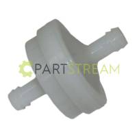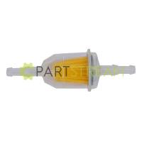 Fuel filter round in-line, for 1/4" fuel line. 150 micron element. For engines without fuel pumps. Fits Briggs & Stratto