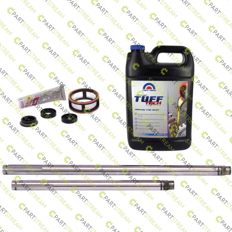 Fits Tuff Torq models K46A, K46AH, K46AI, K46AW, K46BA, K46BN, K46BT, K46CM, K46CR, K46DC, K46DD, K46DE, K46DF, K46E, K46H, K46I, K46L, K46M, K46O, K46S, K46W, K46XX, K574A, K574R, K574RA. Includes: Left Axle 301mm, Right Axle 439mm, Oil Filter, Tuff Torq Oil, Sealant, Oil Seals, Top Cap
