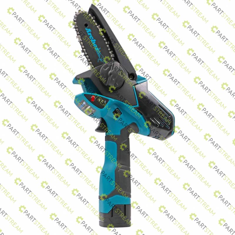 Mini Pruner Saw. Compact and light. Easy to use for pruning trees and shrubs, cutting garden waste and building tasks. Tool-free chain replacement. Battery Charge Level Indicator. Battery life - up to 50 cuts, 40mm diameter branches. Up to 30 minutes under full load. Battery charge time - 90 minutes. Maximum cutting diameter of 100mm. Cutting speed 8m/s. CE Approved. Comes complete with 1 x 4" (4KM4-HL-USW) Bar, 1 x Bar Cover, 1 x 4" (KM-043-28DL) Chain Loop, 2 x 14.4V 1.5Ah Batteries, 1 x Battery Charger, 1 x Lube bottle, 1 x HD Storage case. Weight: 1.3kg with battery