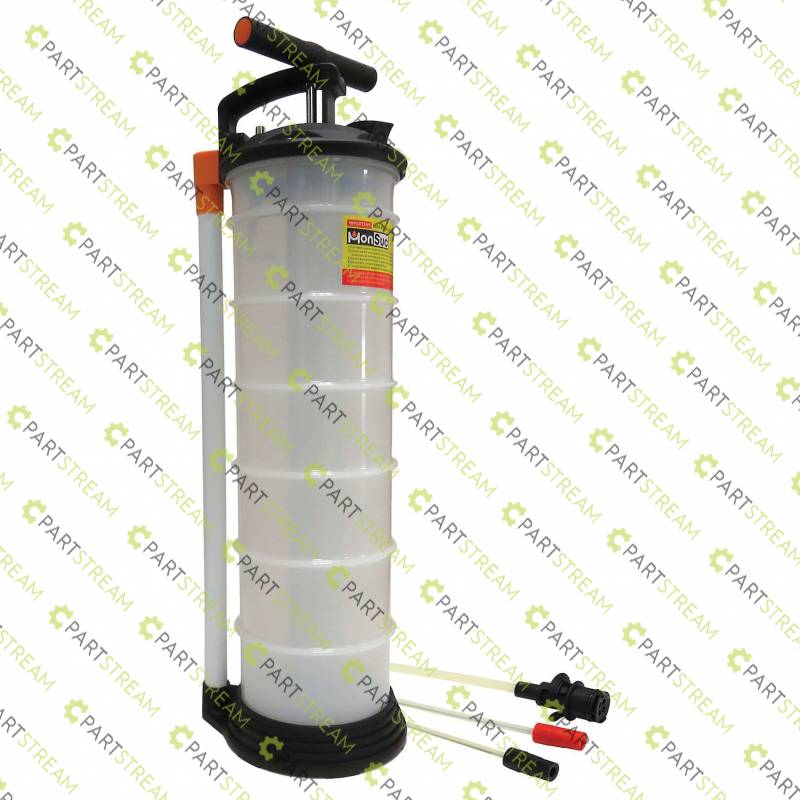 Manually operated suction. Saves time on servicing. A must for every workshop. 6.5 Litre Storage. Can be used to extract many kinds of non/explosive liquids including Engine oil, Gear oil, Coolant fluid, Power Steering fluid, Brake fluid. Replacement Hose Kit Part No. 95-83368