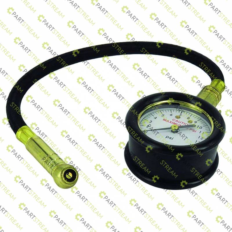 AccuGauge. 0-15psi. Flexible 280mm hose for hard to reach tyre valves. Swivel angle chuck. Polished brass bezel & stem pressure release valve. Needle holds pressure reading till released. Push button valve bleeds air till desired pressure reached. Ideal for checking/adjusting Ride-on mower tyre pressures to ensure cutting deck level.